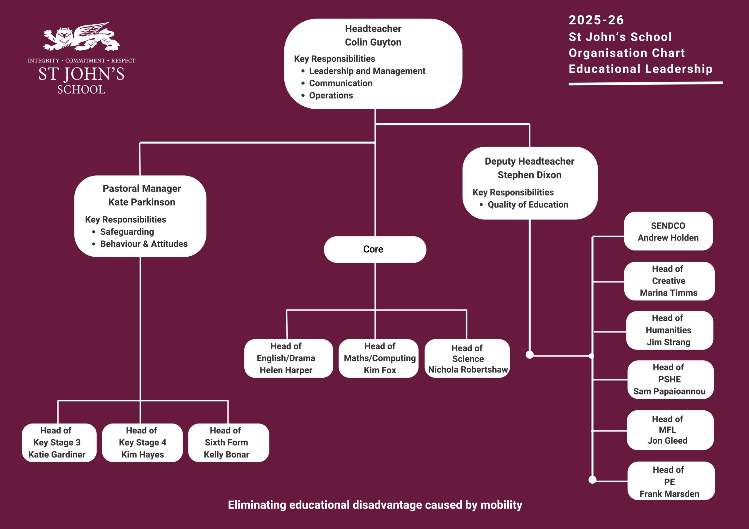 Kate has been a military wife for over 16 years and has a real understanding of the challenges military families face. With having two children herself, she has firsthand experience of the impact changing schools and making new friends can have on young people and strives to ensure all students have a smooth transition into St John’s School.